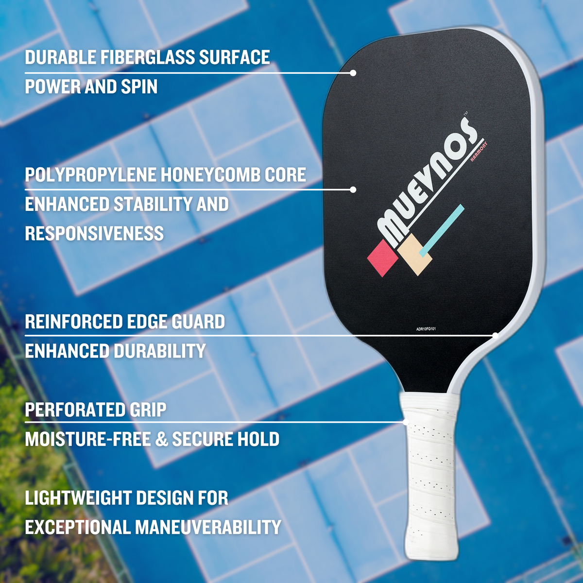 Whether they're playing in the backyard, at the park, or in a junior clinic, the Muevnos Junior Set offers everything kids need to get started, including two lightweight, youth-sized paddles and two versatile pickleballs perfect for any court.
